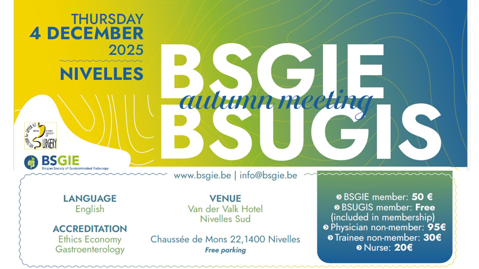 Registration is now open for BSGIE–BSUGIS Autumn Meeting on Thursday, 4 December 2025 at Van der Valk Hotel, Nivelles.